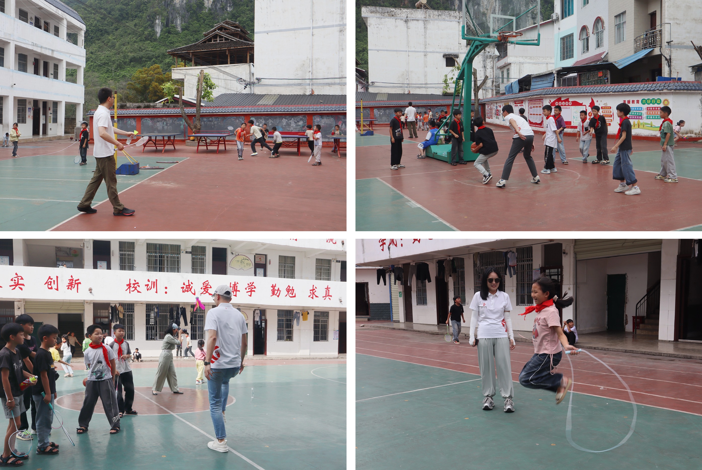 舞臺上,孩子們載歌載舞,用最純真的方式歡迎遠道而來的我們;操場上,團隊成員與孩子們一起打羽毛球、打籃球、踢毽子、跳繩等,歡笑聲在山間回蕩。一次次擊掌,一聲聲歡呼,是彼此心與心之間最自然的連結。