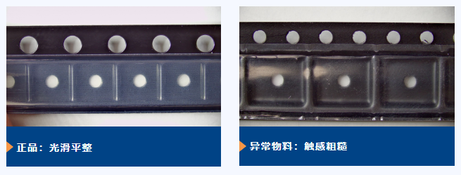 • 編帶材料顏色、厚度或光澤與原廠不一致;