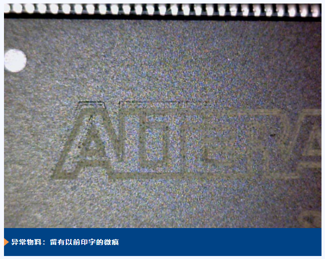 1、打磨重標(biāo)現(xiàn)在的器件絕大多數(shù)采用激光打標(biāo)或用專用芯片印刷機印字,字跡清晰且難以擦除;而翻新元器件會將元器件表面原有的標(biāo)識、型號、參數(shù)等信息打磨掉,重新打上虛假的內(nèi)容。經(jīng)過打磨的元器件表面往往會有明顯的痕跡,比如光澤不均勻,存在細微的劃痕等。